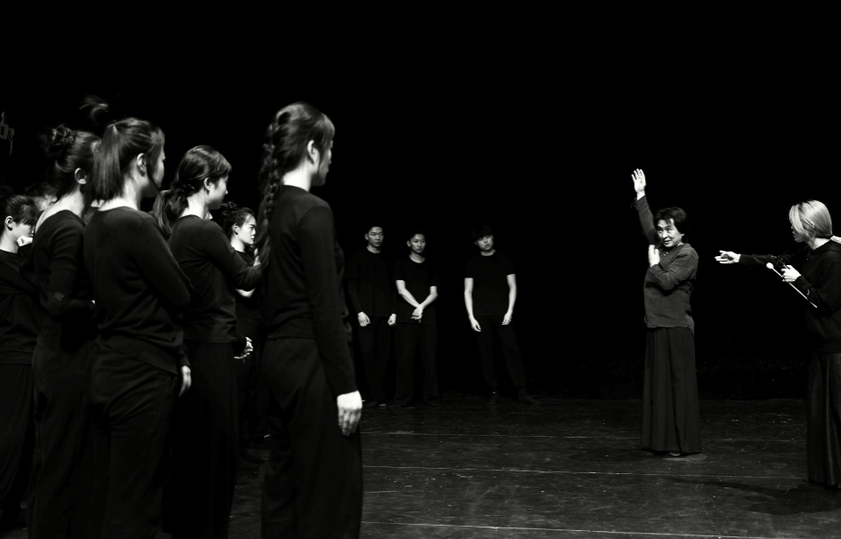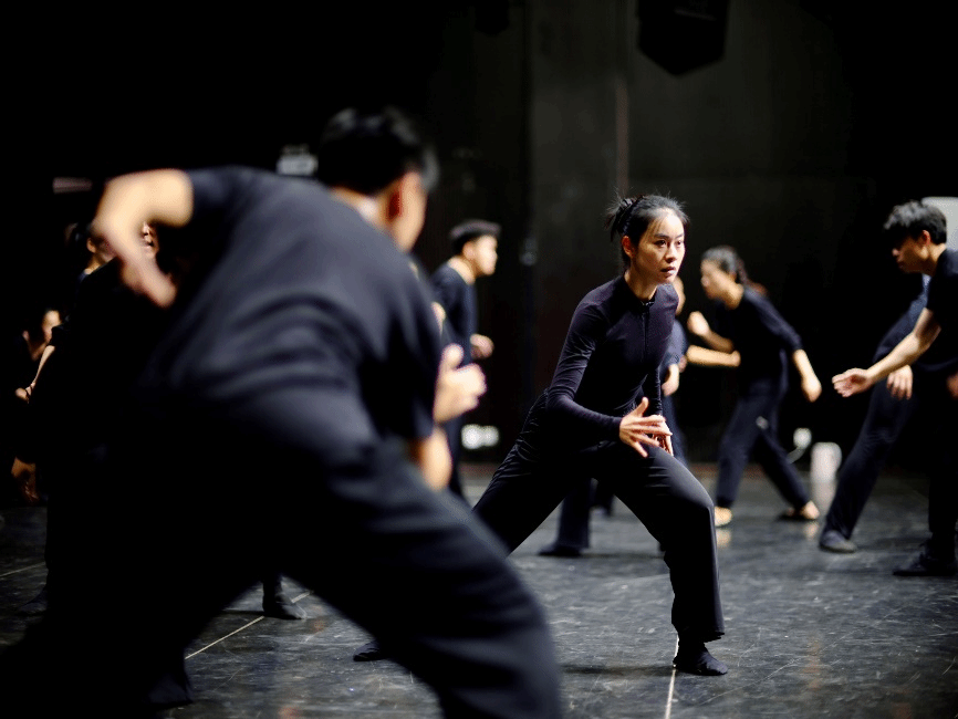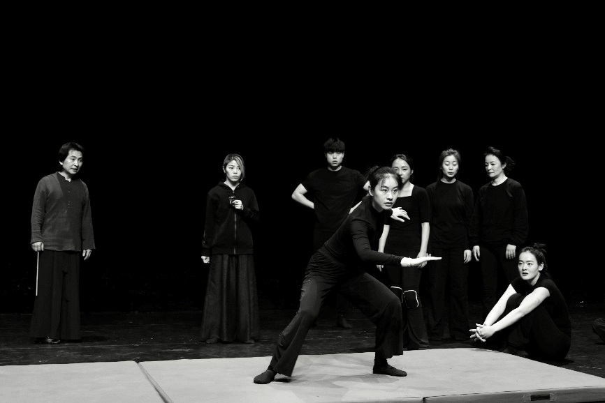 第一阶段,身体训练。首先,通过一系列的动作训练,如奔跑放松、高抬腿、重心转移等,旨在使演员的身体得到进一步放松,唤醒意志;其次,通过相遇、对峙、宣泄、抛空间、看山等训练,让演员感受身体的共鸣和共振,感知存在,与自己和同伴相遇,形成眼前有空间,空间里有我的认识,充分感受并形成空间感和体积感;最后,通过九姿势、击打动作分解等训练,让演员进一步明晰行动的法则,并加入意义,最终形成意志与身体的合一。
