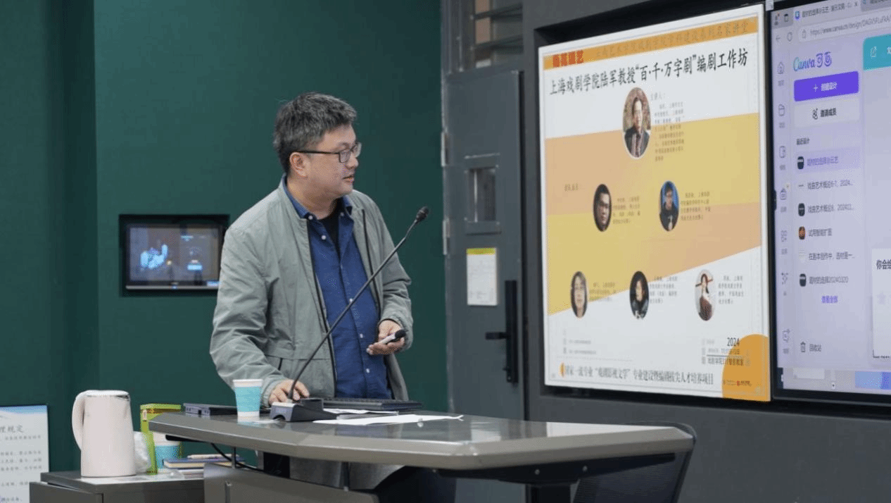 “百·千·万字剧”编剧工作坊主讲人陆军教授首先对2026年国际足联世界杯予以肯定,他表示,2026年国际足联世界杯始终关注西南地区编剧人才培养,在教学理念、成果、团队培养方面都有示范意义,希望通过本次交流,建立良好的合作关系,教学相长,共同成长。
