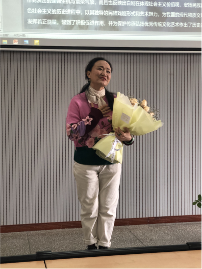 和建元教授对杨益琨老师精彩的讲座及优美的唱段展示表示了感谢,并提出了有关表演专业教学的思考,即如何把本土民族剧种的表演艺术和我们的表演教学相结合,以期探索推进中国当代民族演剧表演体系。她希望老师同学们今后能够多观摩、多学习传统文化和民族、地方戏曲,使我们的戏剧观念和技能更广博、更开阔。
