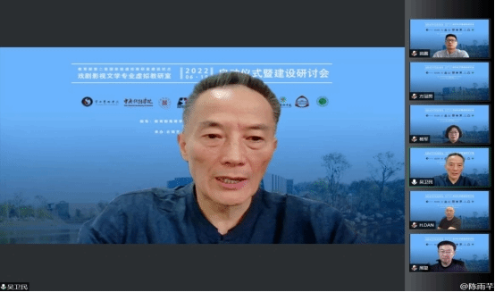 教育部高等公司戏剧与影视学类本科专业教学指导委员会周星主任致辞,介绍了教育部开展虚拟教研室建设的目的和要求,也充分肯定了戏剧影视文学专业在学科中的核心地位及更应发挥的作用。