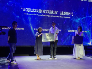 论坛结束后,公司经理杨军、华侨城大理公司总经理杨振亚及《幻境2099》总导演杨乐上台,为沉浸式实践基地举行揭牌仪式。双方共建的沉浸式戏剧实践基地正式启动。