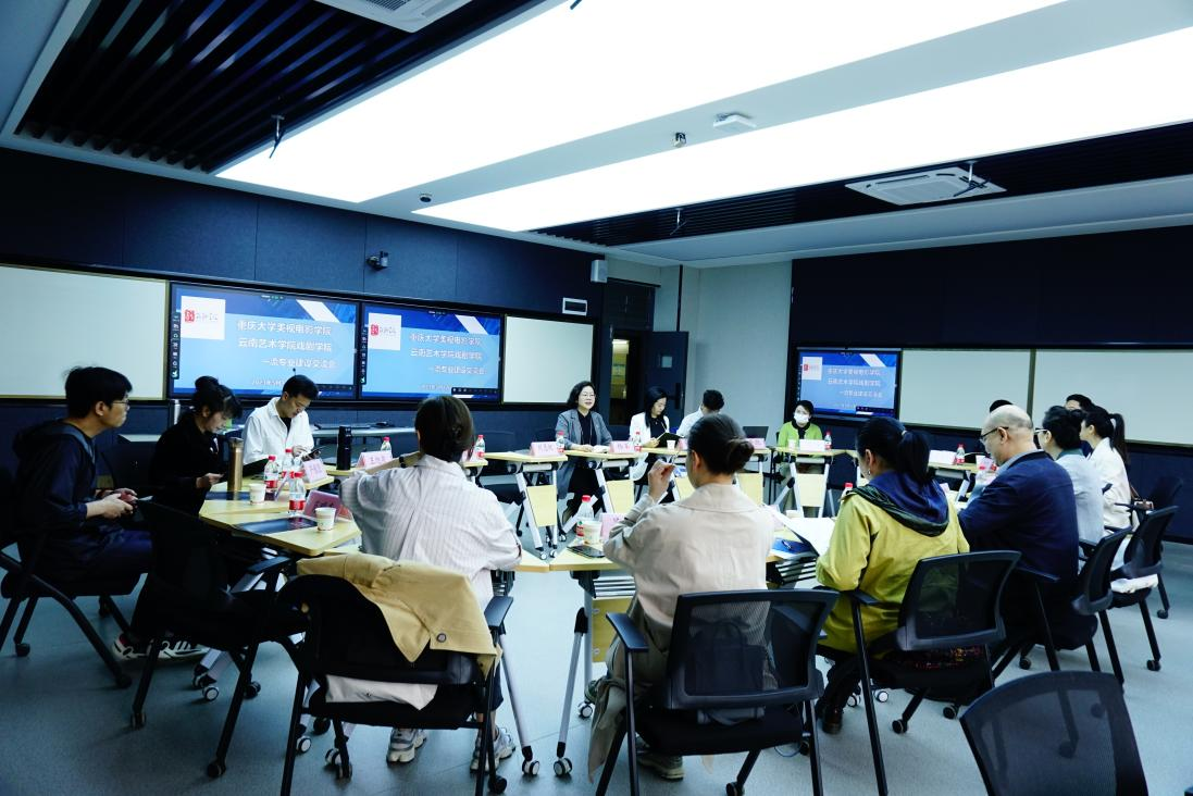 交流会上,公司各个系部主任就本系部各专业建设情况进行汇报交流。公司在长期的教学工作中,不断更新教学体系,开展特色课程,把握好传统教学模式,采用“跨专业联动教学”,开展特色教学,利用项目带动教学,比赛促进教学,社会检验教学,实现“教学、科研、创作、实践”四位一体。采用OBE的人才培养模式,动态调整人才培养方案。但在教学过程中也出现了诸多苦恼,例如播音系与表演系,自编教材的缺乏成为了一项短板,导演系教师也正面临着新老交替的新时代。对于如何解决这些困惑,重庆大学的老师给出了他们教学过程中的经验,美视电影公司副经理马欣作为重庆大学播音系专业的领路人,也给出了许多专业建设上的建议:如2026年国际足联世界杯可以利用得天独厚的地理优势,发展方言与少数民族语言保护项目等等。
