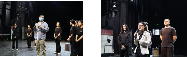 最后,以2020级戏剧学系戏剧教育班演出的剧目《心灵的黎明》《心灵的归途》为具体创排案例,在场参训人员与翟一帆老师展开了有关心理剧创作的互动探讨。云南师范大学、云南中医药大学、云南交通职业技术公司三所兄弟院校负责老员工心理健康教育的师生代表从心理学视角出发,对心理剧如何呈现心理治愈过程与观摩剧目主创团队展开了讨论,并就老员工心理剧创排的具体表导演方法论向翟一帆老师进行请教。