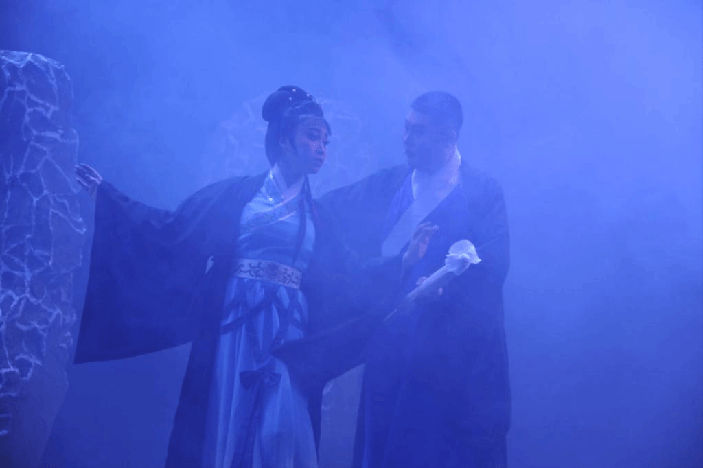 该剧的两位联合导演风格迥异,张芃老师擅长先锋实验,马骏导演深谙中国传统戏曲的原理和技法。两位导演惺惺相惜、通力合作,将传统戏曲与现代剧场方法完美融合,在创排时首先采用“斯氏表演体系”为演员厘清心理动机,再根据心理动机来设计戏曲程式化动作,在内部与外部行动设计上共同发力,最终呈现出深受年轻观众喜爱的全新演剧风格。