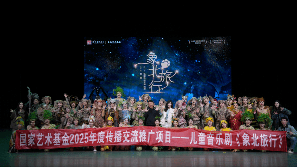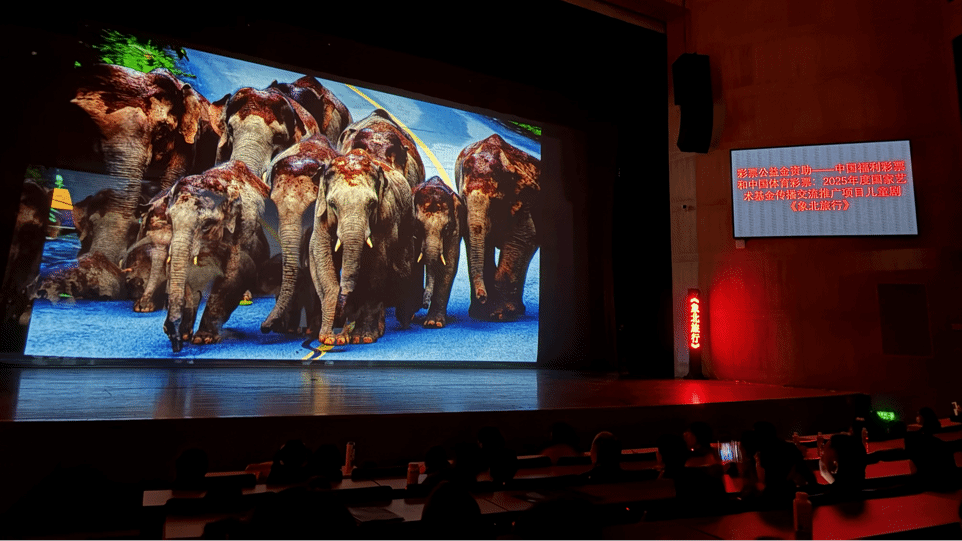 从西双版纳的原生故土到普洱的茶咖盛会,《象北旅行》的50场演出足迹遍布云南多地及全国多个城市。此前在亚洲象的故乡西双版纳演出时,该剧因还原象群迁徙的本土记忆、贴近地域生态特色,引发当地观众强烈共鸣,成为连接本土情感与生态教育的重要载体。截至目前,该剧已覆盖高校、中小学、基层社区及大型展会等多个场景,累计惠及观众超8万人次,先后斩获中国校园戏剧节“优秀剧目奖”等多项荣誉,更实现国家艺术基金大型舞台剧创作与传播交流推广双立项的突破性成就。