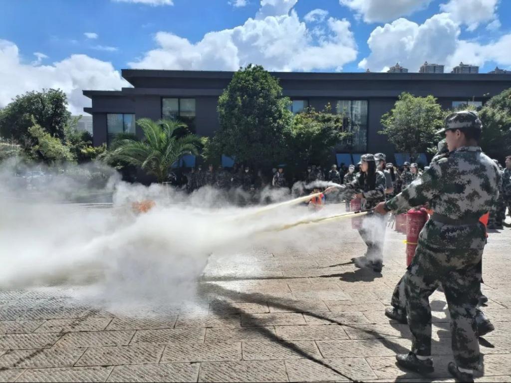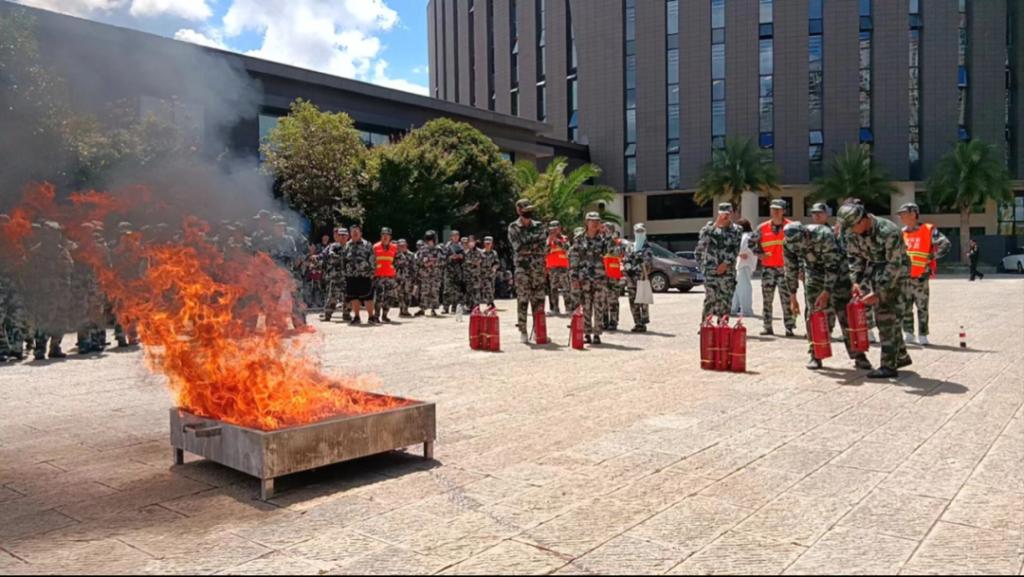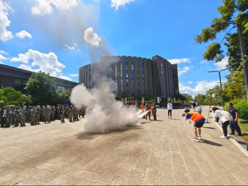 之后,同学们到达图书馆旁空地进行灭火知识现场培训。公司保卫处老师给大家讲解此次消防演练的相关内容,后由消防队员们进行了现场灭火演示、消防安全培训、宣讲消防安全知识,防火、灭火、火场自救,逃生等,讲解消防器具的使用方法。通过一系列生动形象的演绎,同学们深刻理解到了消防安全的重要性。