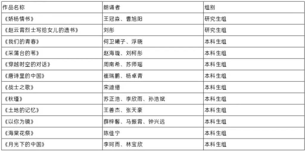本次选拔赛的所有结果本着“公平、公正、公开”的原则,进行标准化评定。最终挑选研究生作品两部,本科生作品十部,报送至第25届齐越朗诵节。