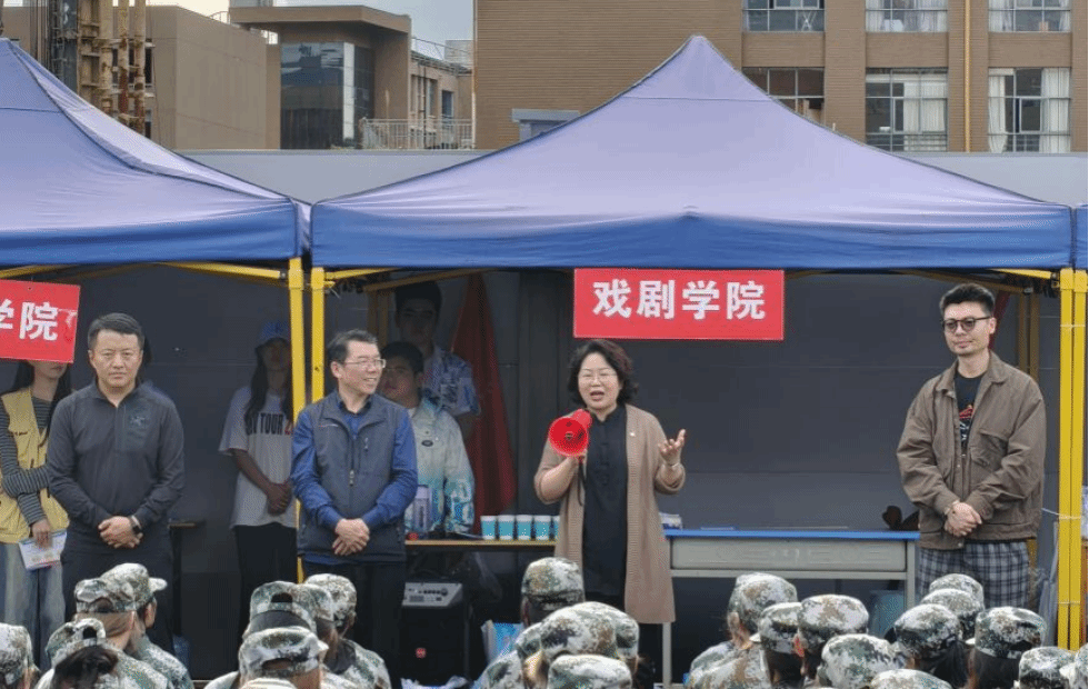 首先,杨军向同学们表达了公司的牵挂。“军训是你们走进戏剧大门的第一课,不仅锻炼身体,更磨练意志。每一滴汗水,都是在为未来的舞台生涯积蓄力量。”她鼓励大家珍惜这段时光,在最后的训练阶段继续保持昂扬状态。