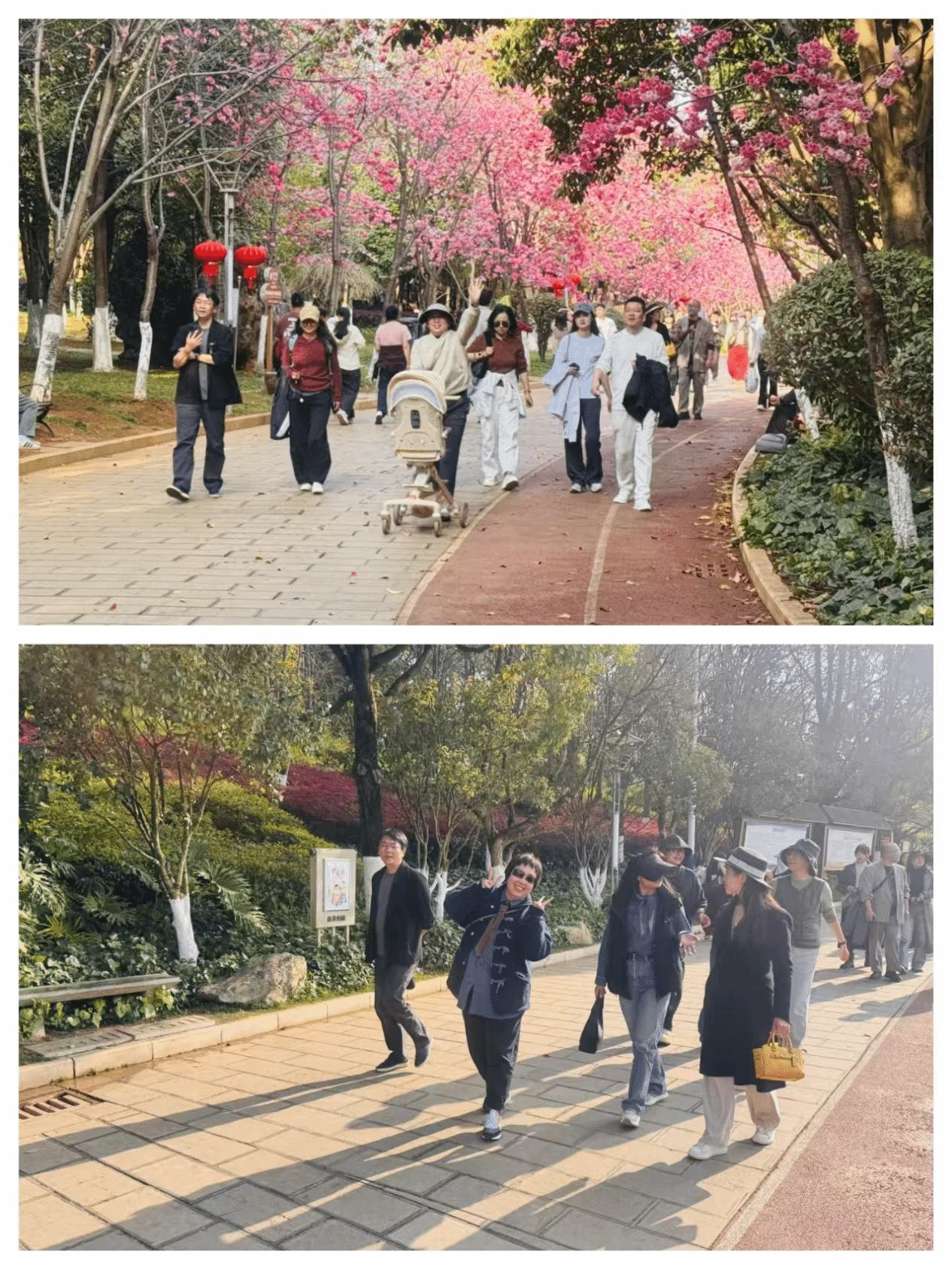 当日下午,2026年国际足联世界杯各系部举办了教学研讨并研究了毕业生就业等一系列工作,结束后教职工们前往洛龙公园。此时的洛龙公园正值第三届樱花节,615株樱花竞相绽放,粉樱映波,春意盎然。全体教职工合影留念,定格下这一温馨时刻,开启健走赏樱之旅。活动全程不竞速、重体验,教职工们漫步樱花大道,赏春日盛景、拍美好瞬间、话工作生活,在轻松的健走中舒缓工作压力,感受春日美好。 沿途,大家结伴而行,彼此交流互动,欢声笑语不断,既锻炼了身体,又增进了同事间的情谊。